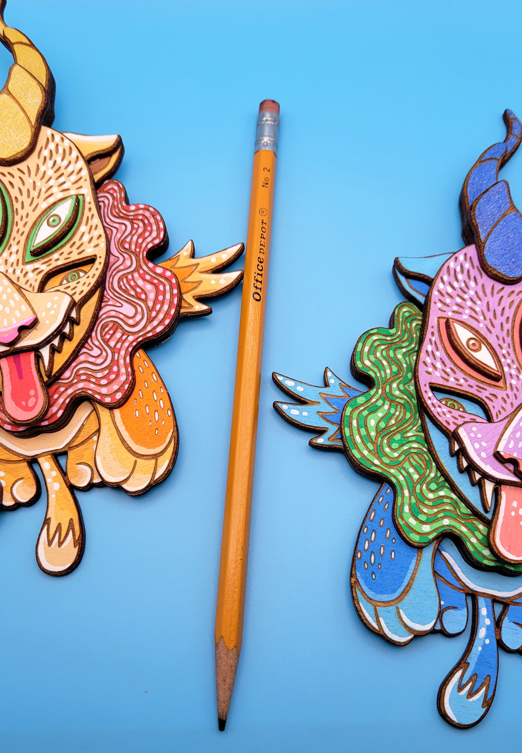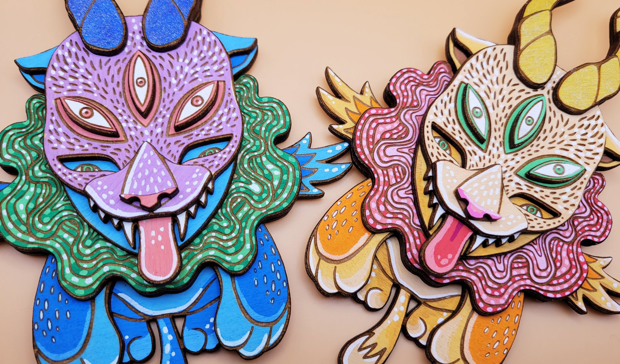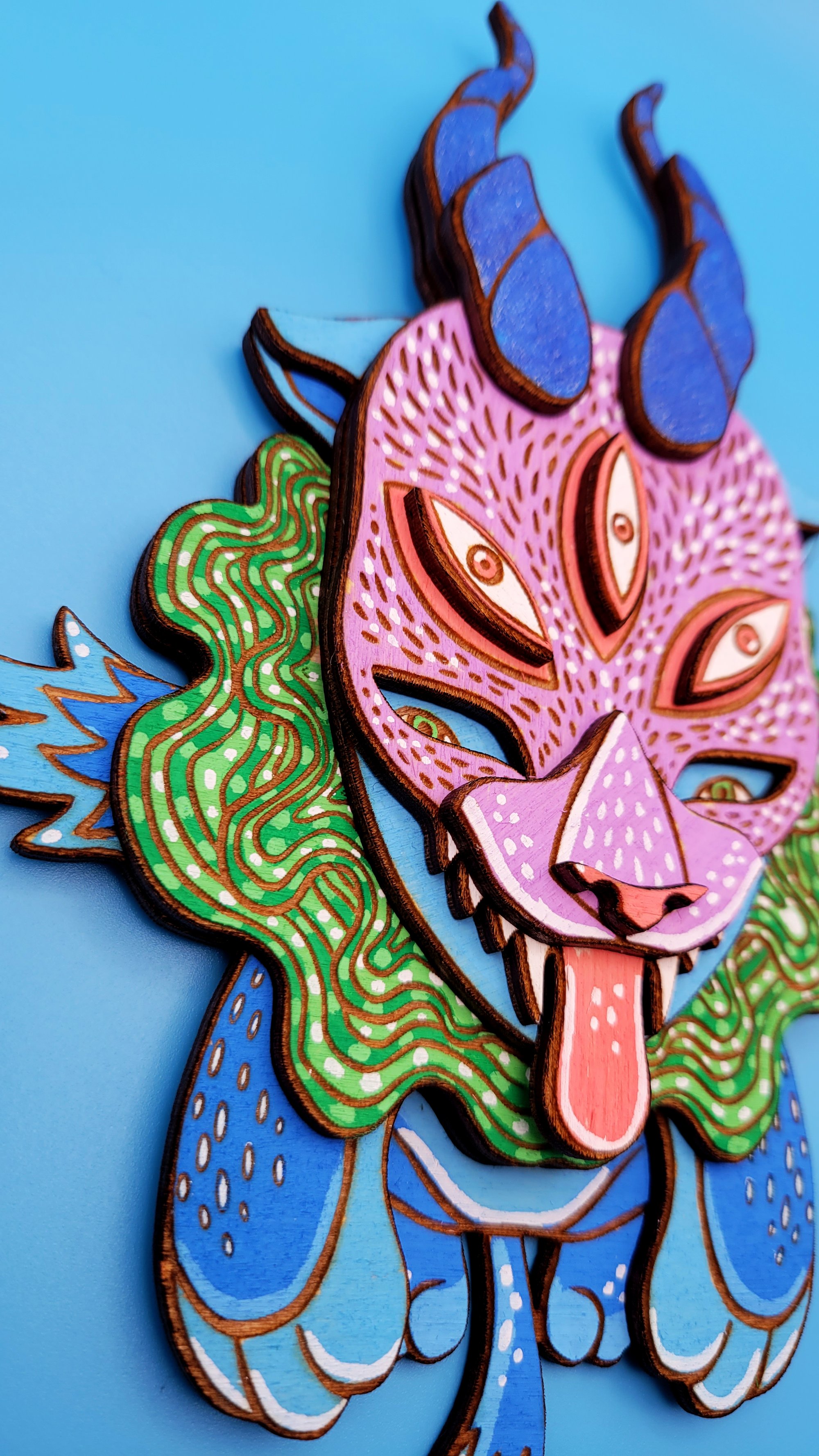 Chaos Spirit - Hand Painted 3D Wooden Sculpture - Wall Art - Winged Cat Dragon