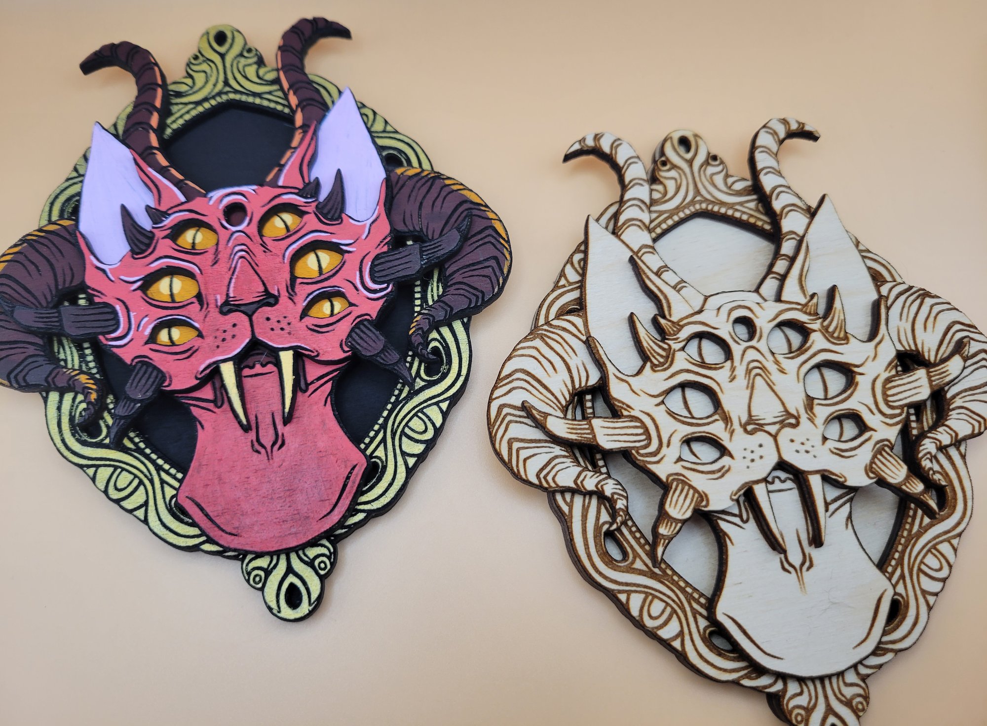 These mini wooden Hellcats are designed by me then lasercut and hand-painted or left bare for you to paint or display as you see fit! I can add a wall hanger or magnet to the back based on your preference. They are approximately 5.25" tall x 4.5" wide. Please message me if you have ANY questions!