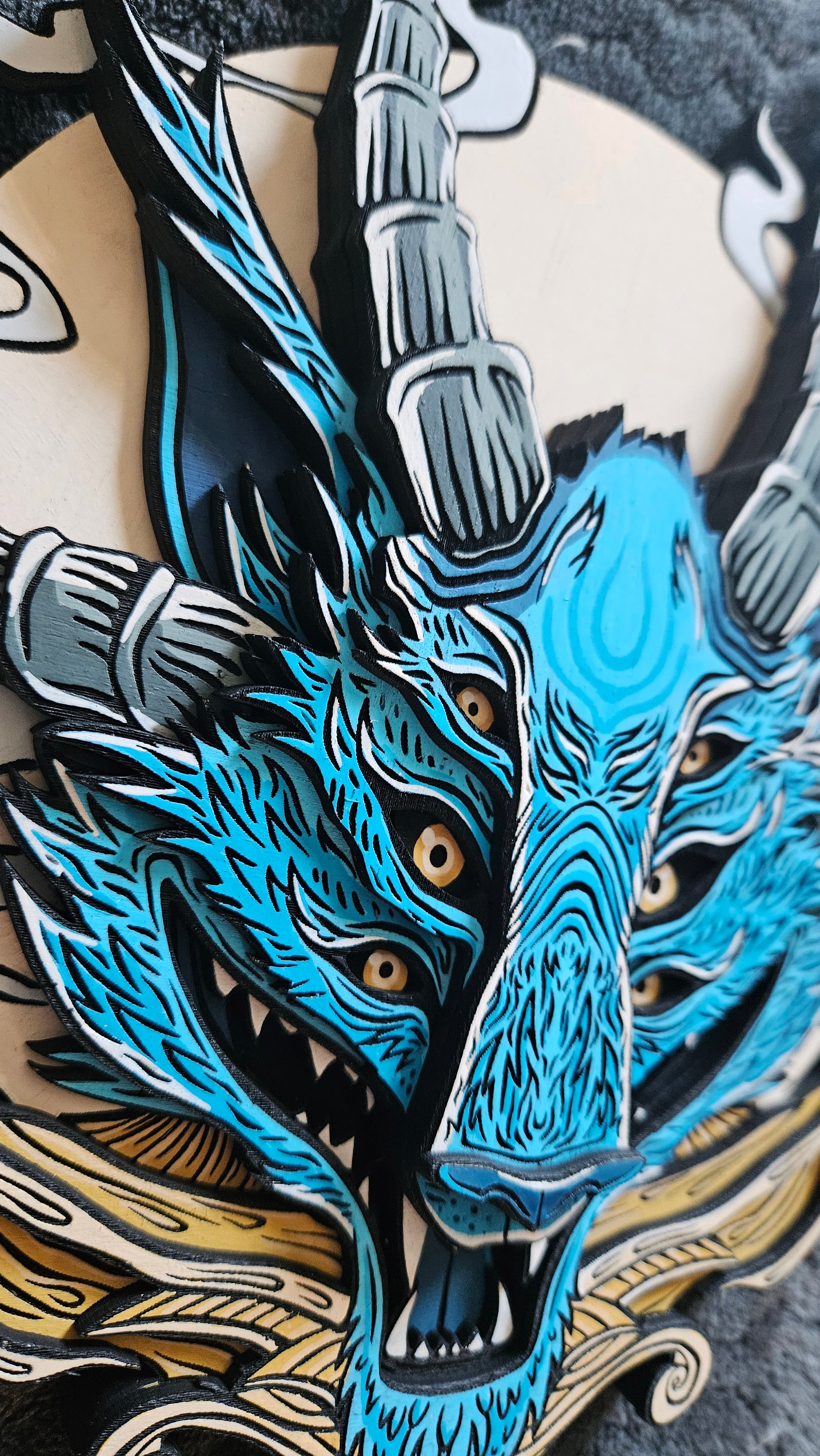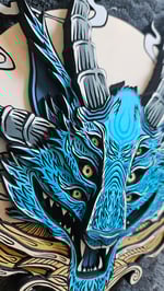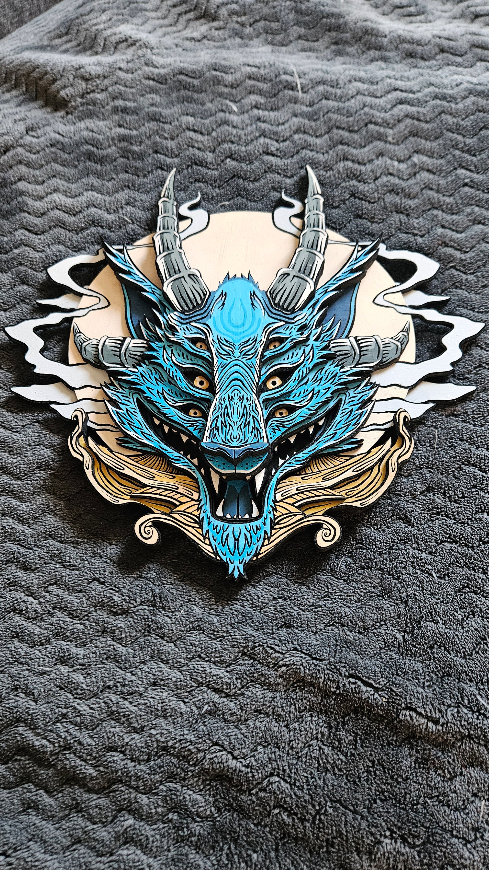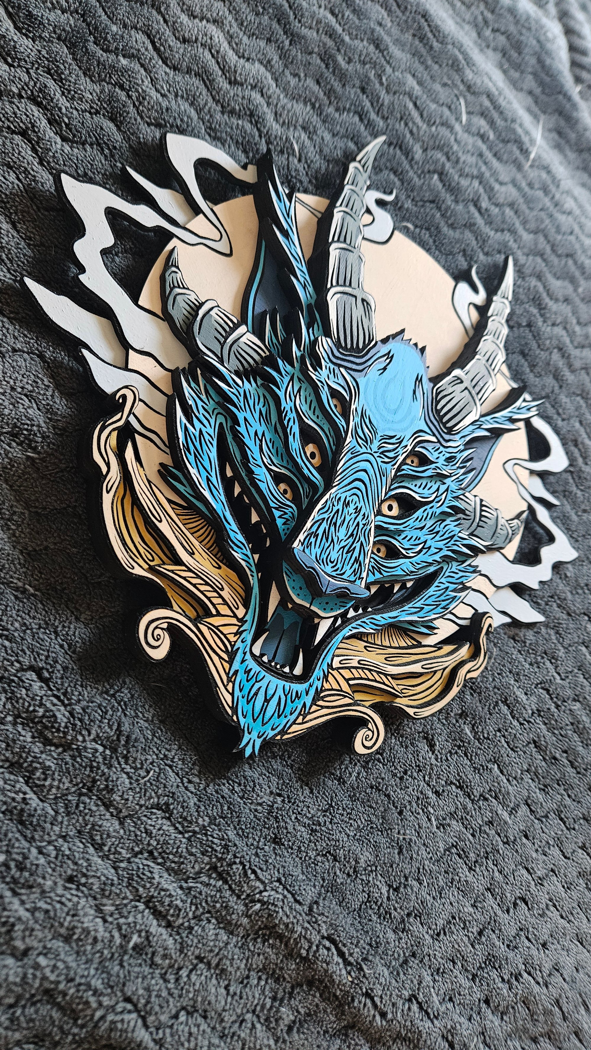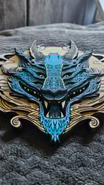 9.5" x 10" on baltic birch and painted with acrylics. There is a saw hanger on the back for convenient hanging!