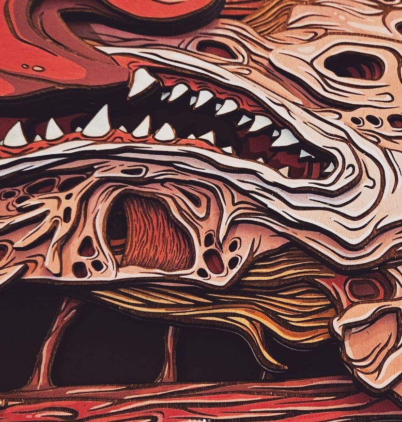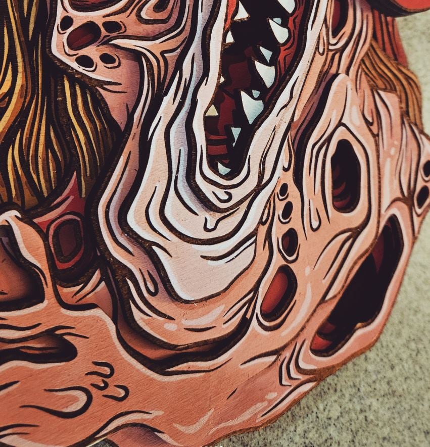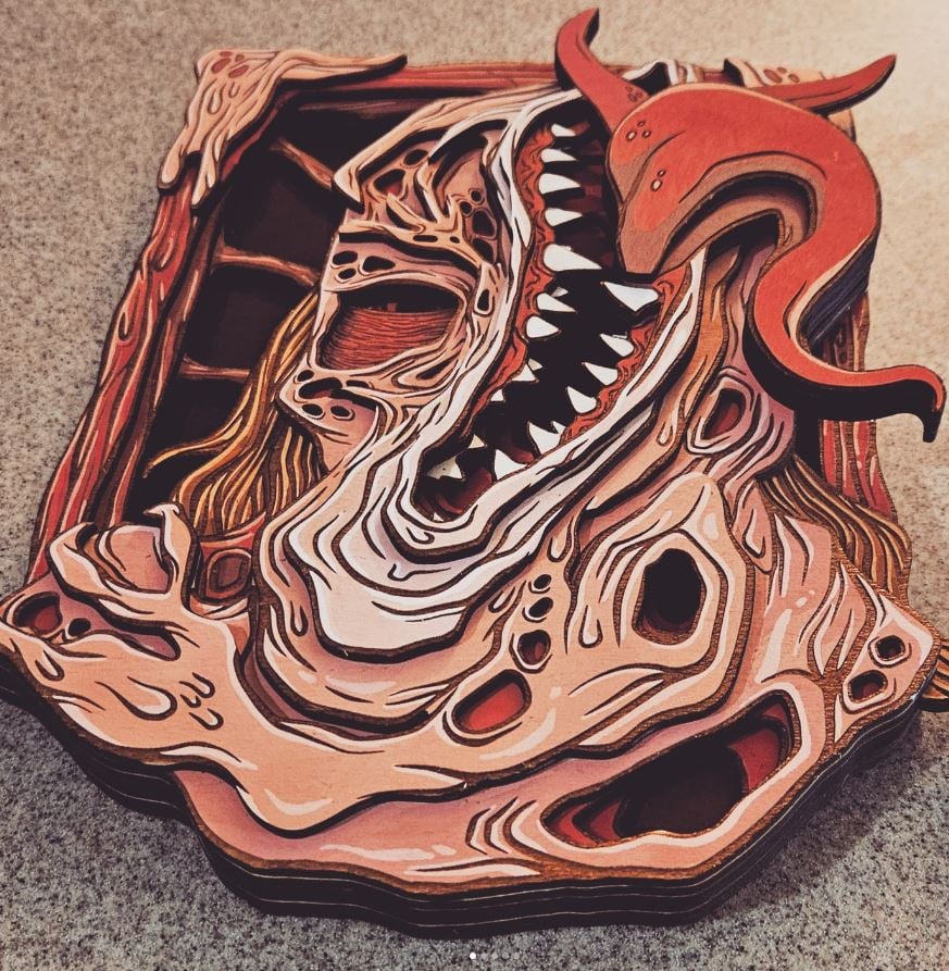 Hand-painted and laser cut wooden layered art designed by yours truly and inspired by John Carpenter's The Thing!