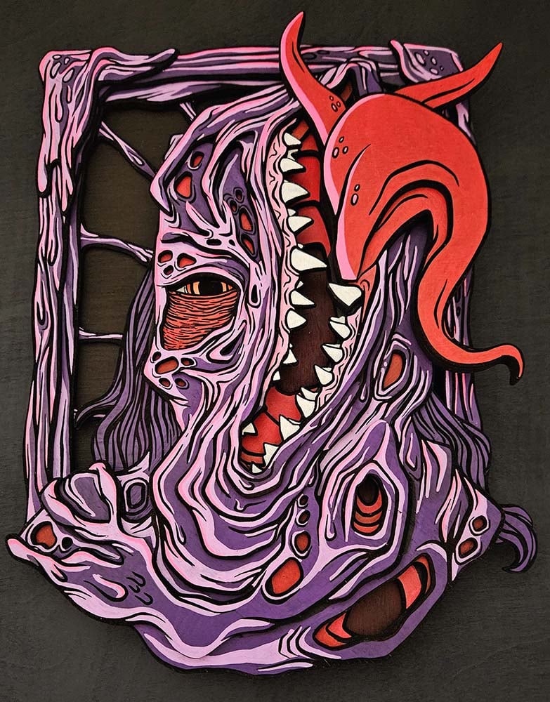 Hand-painted and laser cut wooden layered art designed by yours truly and inspired by John Carpenter's The Thing!